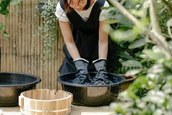 - Bước 2 : Đổ nước giặt pha loãng vào một chậu nước khác và đánh bông xà phòng .