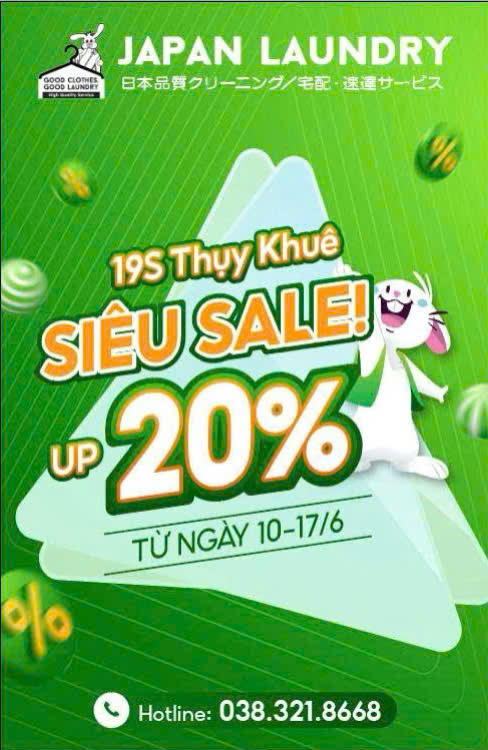 20% discount when customers bring to 19S Thuy Khue store. Dear customers, don't mistake it, it's 20% off the entire price list at Japan Laundry ☄️☄️☄️. HOT program starts from June 10 - June 17. Pick up the phone and call immediately: 093.648.6958 - 038.321.8668 for more details