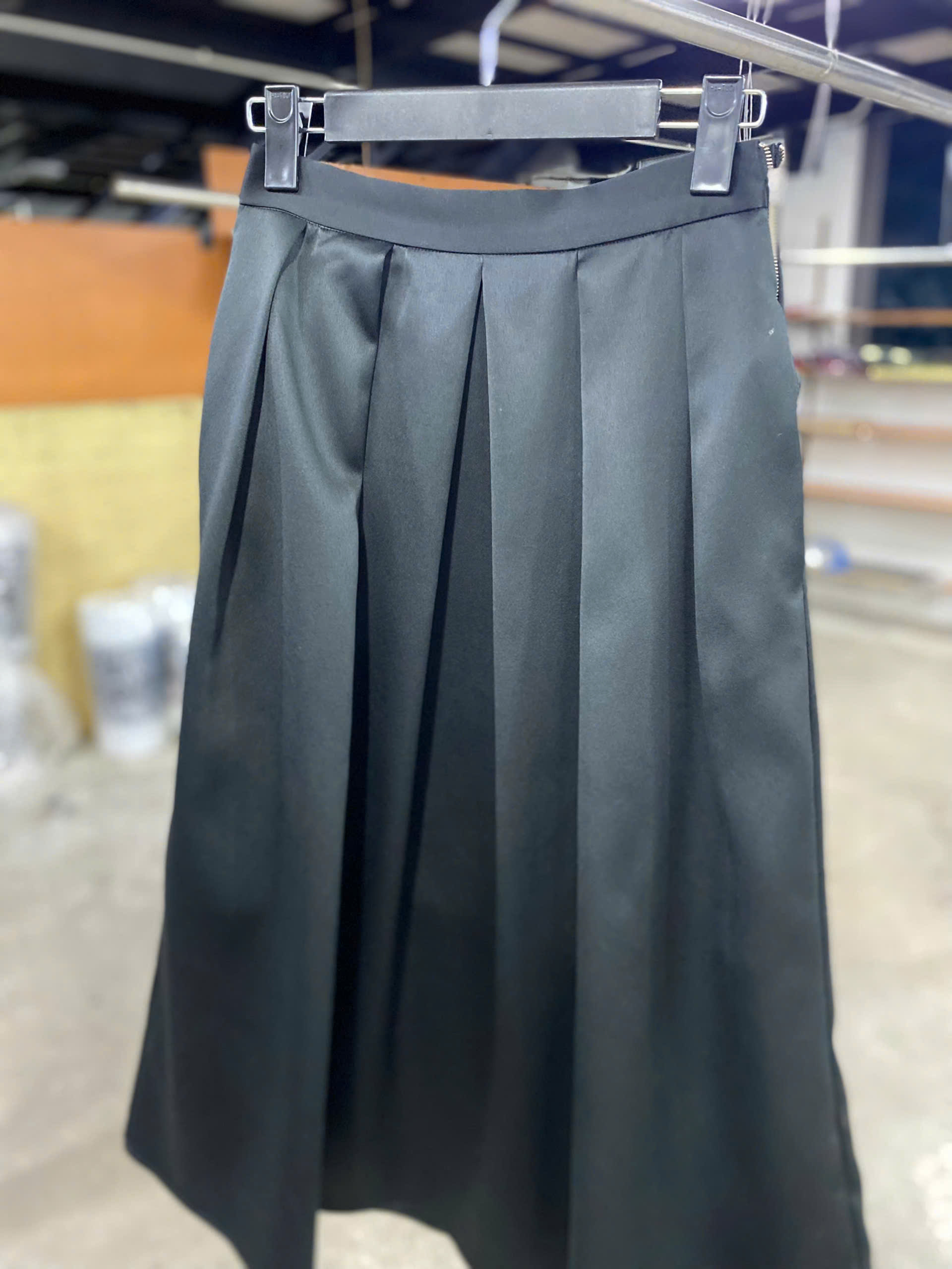 - Bảo quản: Khi cất giữ, luôn treo chân váy bằng móc kẹp thay vì gấp lại để giữ nếp ly bền đẹp.