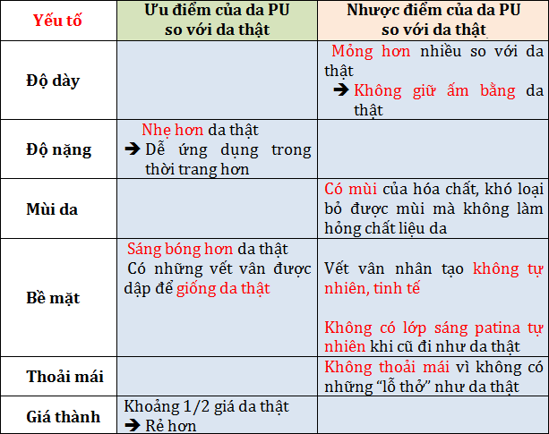 Những đặc điểm của Da tổng hợp Polyurethane so với Da thật ( Da tự nhiên )