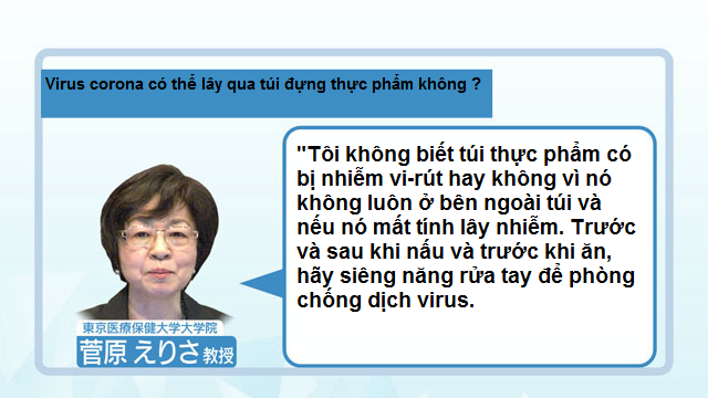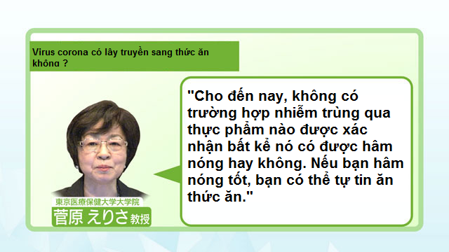 Giáo sư Sugawara cho biết, "Cho đến nay, chưa có trường hợp nào lây nhiễm qua thức ăn được xác nhận bất kể nó đã được làm nóng hay chưa. Nếu bạn đun kỹ, bạn có thể tự tin ăn thức ăn".