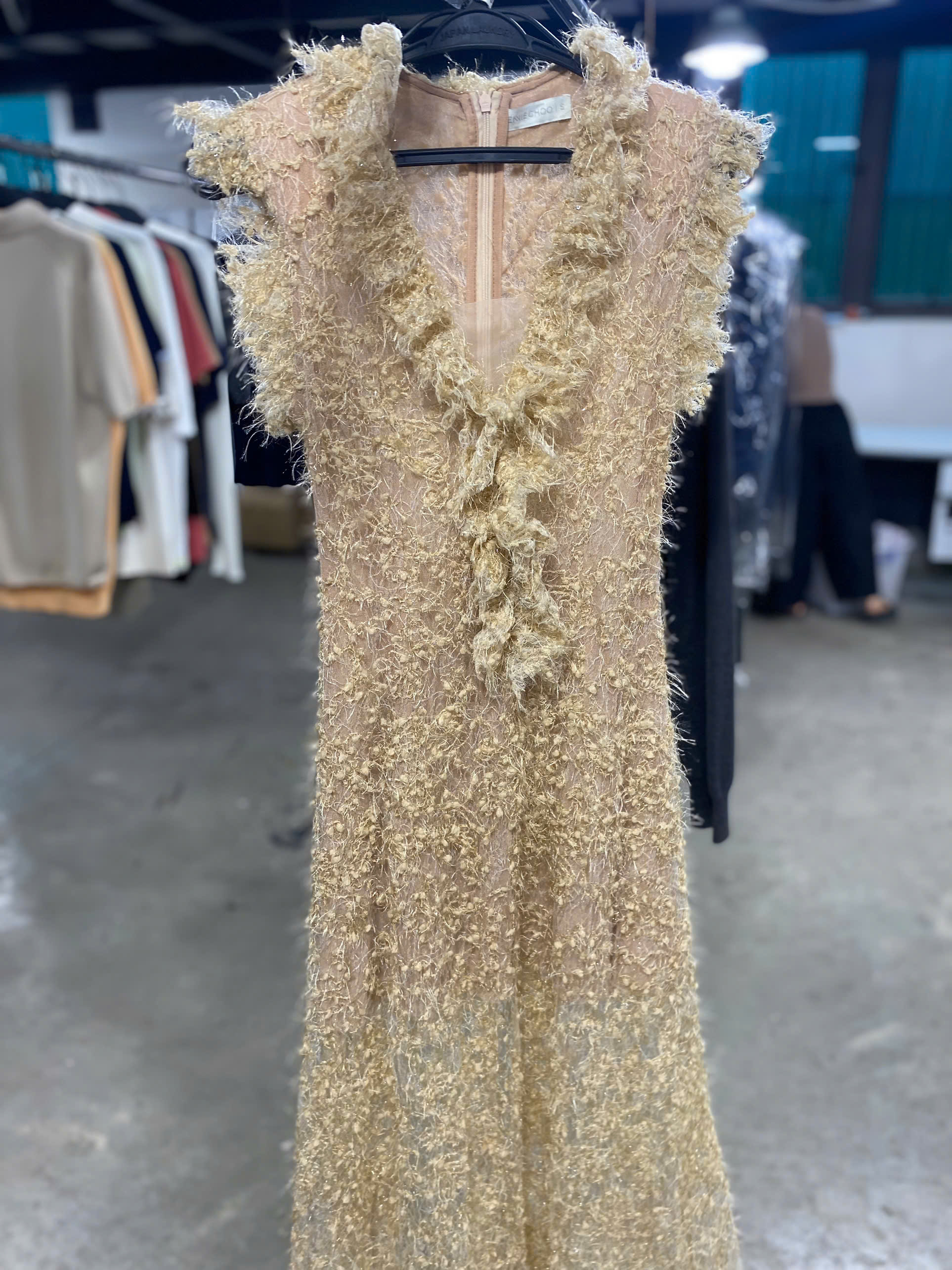 - Nhãn mác trên váy có ký hiệu hình vòng tròn (biểu tượng của Dry Clean Only).